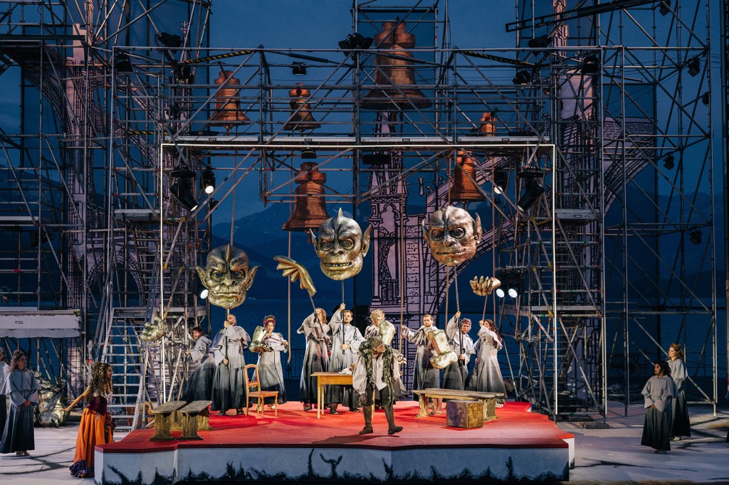 Das ganze Ambiente für dieses Musical war umwerfend. Die grosse Zuschauertribüne, die Bühne auf dem See und ein echter Regenbogen dahinter waren ein wunderbarer Auftakt. Dann kamen die Mönche und Nonnen in die Kirche, sie bildeten den Chor und sangen wunderbar. Die Geschichte begann mit der Vorgeschichte, bis Quasimodo als Neugeborener in die Obhut von Erzdiakon Frollo gebracht wurde. Dann der grosse Schnitt und die Geschichte von Quasimodo begann.