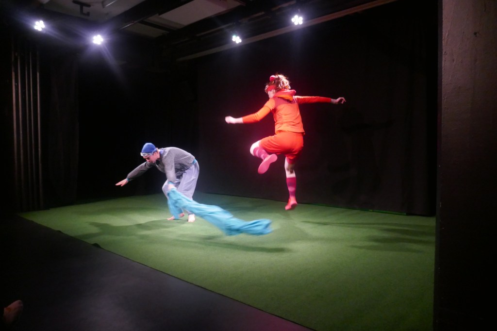 Wir besuchten die Vorstellung für Kinder ab 2 Jahren zusammen mit unser ziemlich genau 2 jährigen Enkelin. Sie war noch nie in einem Theater, erst in halben Stunden wo Geschichten erzählt und Lieder gesungen wurden. Wir wollten wissen ob das Stück tatsächlich für kleine Kinder funktioniert. Es waren sehr viele recht kleine Kinder im Saal anwesend. Es sei vorweggenommen es funktionierte sehr gut. Aber beginnen wir am Anfang und mit einer kleinen Kritik. Die Schauspielerinnen und der Musiker traten auf die Bühne und nannten ihre gewöhnlichen Namen. Nachher stellten sie Fragen wie: Wer war noch nie in einem Theater? (kleine Kinder antworteten nicht). Was braucht es für ein Theater? (Ebenso unpassend). Dann zeigten sie dass es im Saal dunkel sein wird und auf der Bühne alles zwischen hell und dunkel, das war sehr gut. Sie erklärten kurz, dass sie jetzt nicht mehr die wirklichen Namen haben, sondern Pick und Nick und im Wald einen Picknickplatz suchen würden. Ab da wurde es gut. Das Stück begann. Die beiden traten einzeln auf, eine Person verspielt mit Bällen, die andere in den verschiedensten Tier und Fabelwesenformen mithilfe eines Fixleintuches, immer sehr herzig und sympathisch.